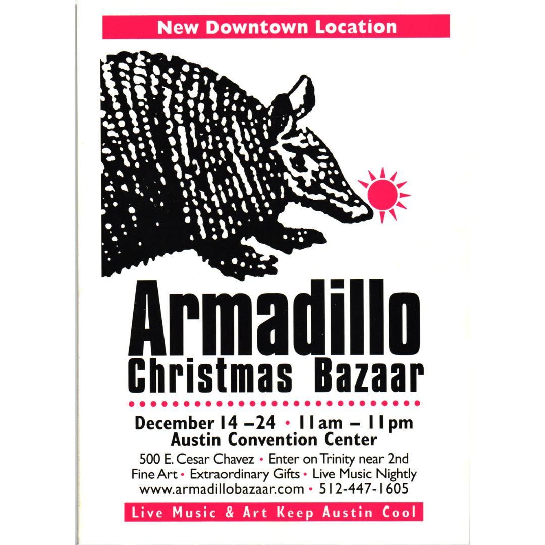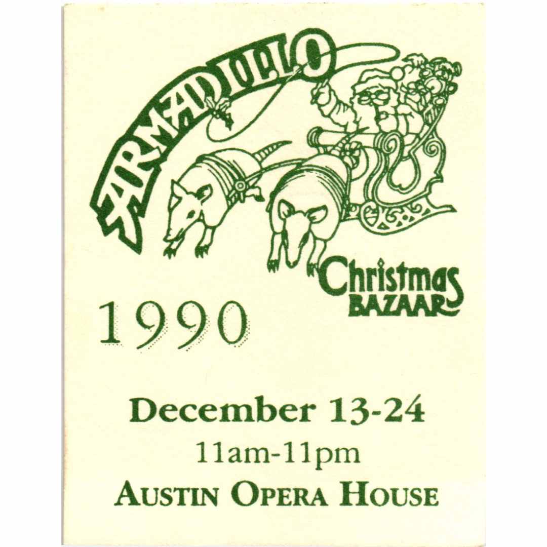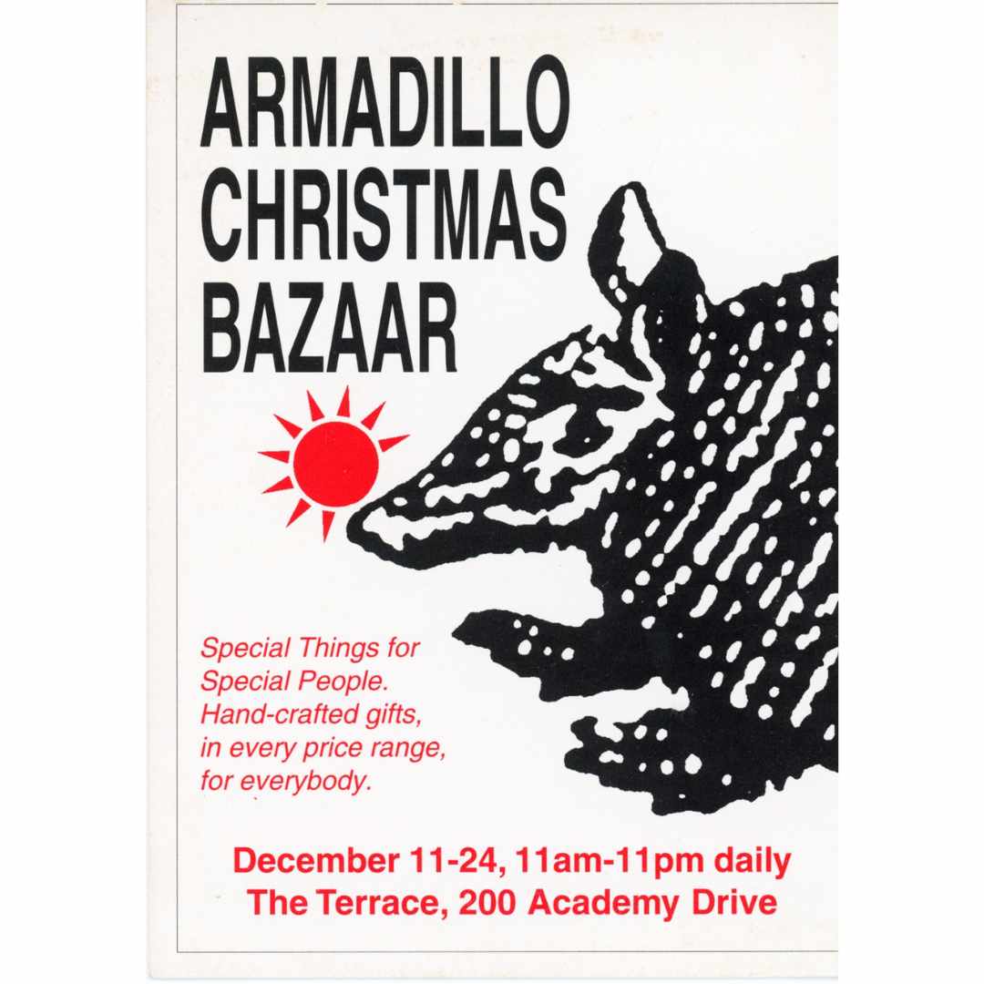In 1985, a competing show with big backers tried to take the identity from the Armadillo Christmas Bazaar and have their own Dillo Christmas downtown. Resulting conflict and chaos upset Bruce enough to set him on a course of bringing the Armadillo philosophy and values to the rest of Austin through a long career in community service.