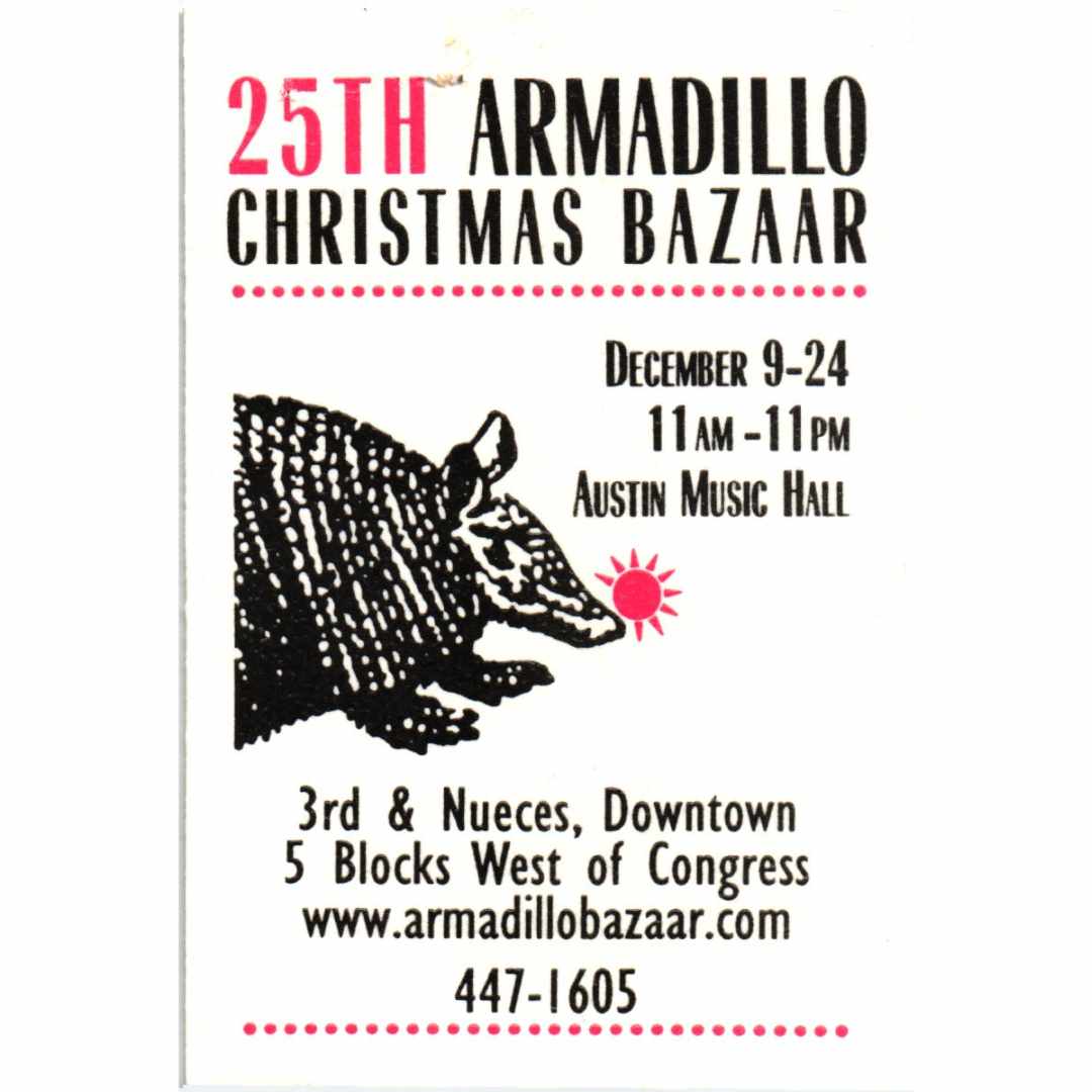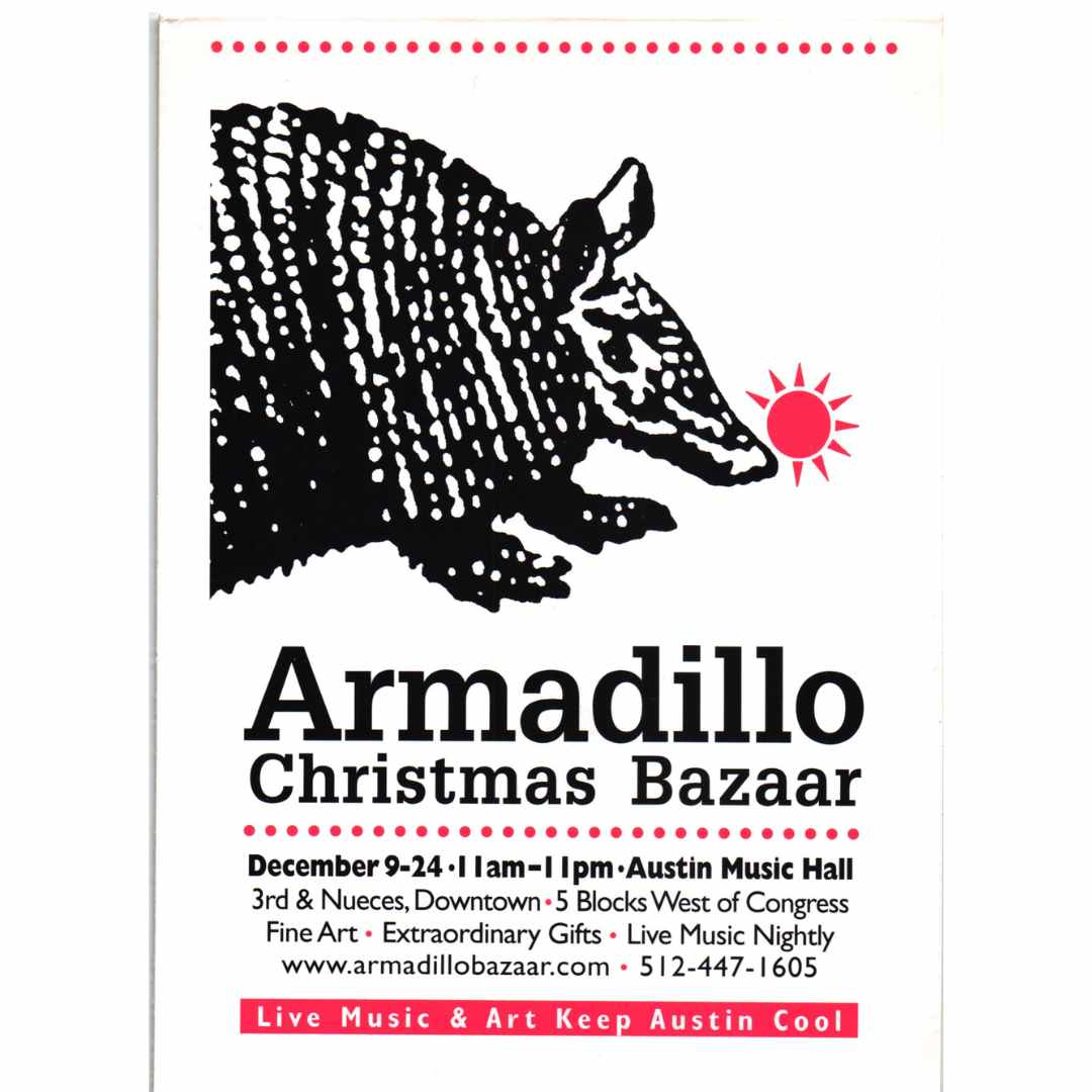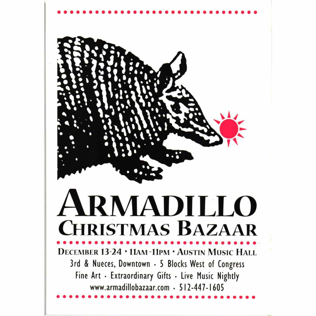 In 1985, a competing show with big backers tried to take the identity from the Armadillo Christmas Bazaar and have their own Dillo Christmas downtown. Resulting conflict and chaos upset Bruce enough to set him on a course of bringing the Armadillo philosophy and values to the rest of Austin through a long career in community service.