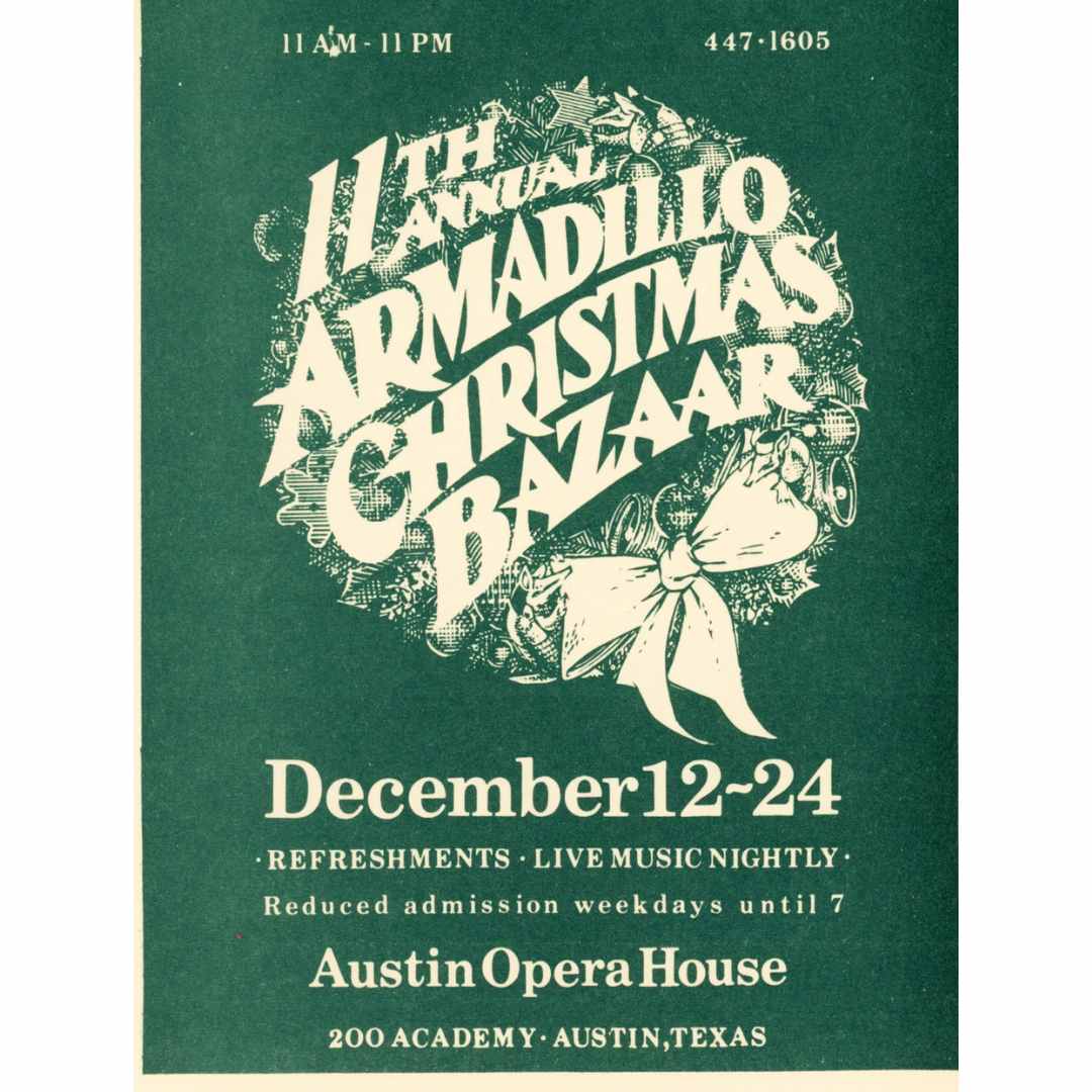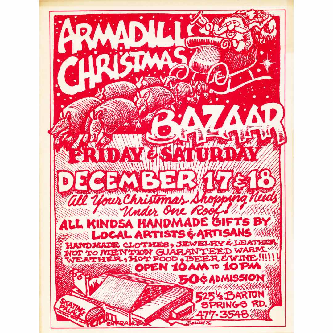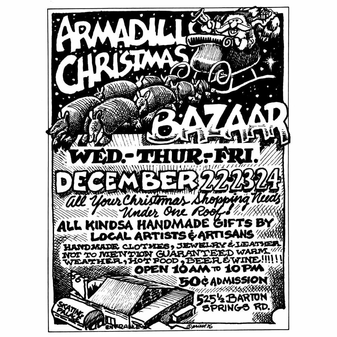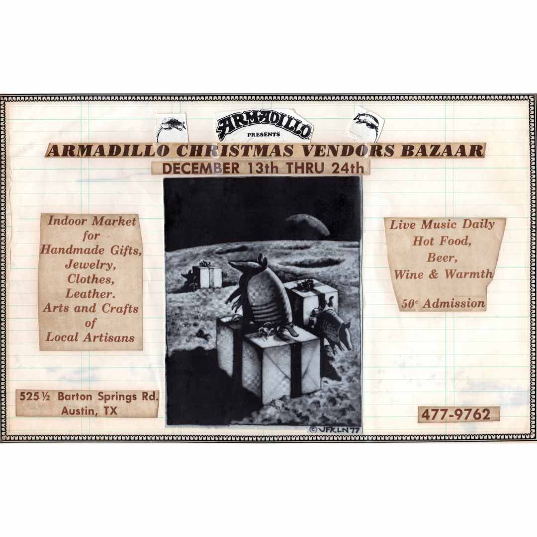 In 1976, Armadillo World Headquarters was in deep financial trouble and getting deeper. An offhand comment by Lucinda Williams inspired Bruce Willenzik to dream up the idea of a Christmas market at The Armadillo.