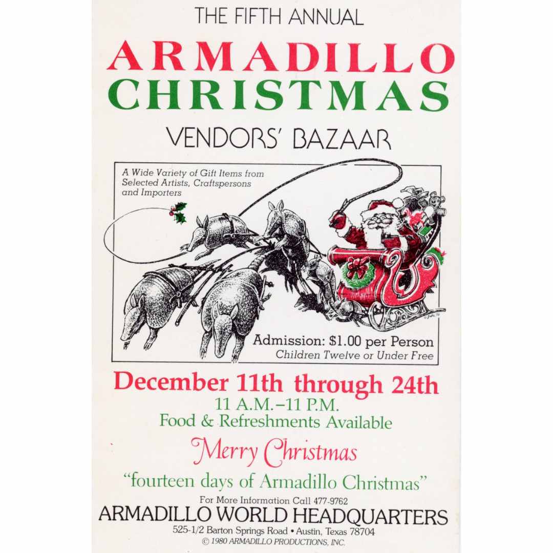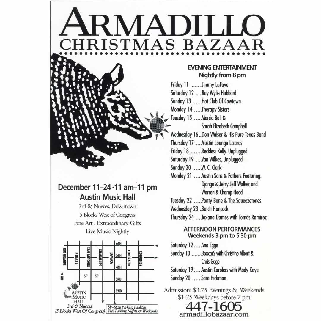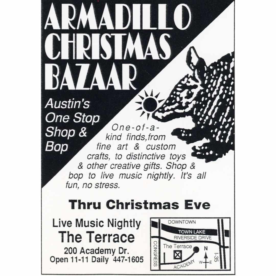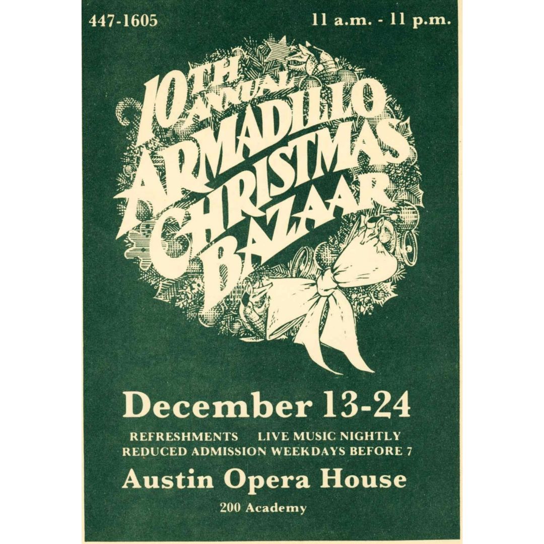 In 1976, Armadillo World Headquarters was in deep financial trouble and getting deeper. An offhand comment by Lucinda Williams inspired Bruce Willenzik to dream up the idea of a Christmas market at The Armadillo.