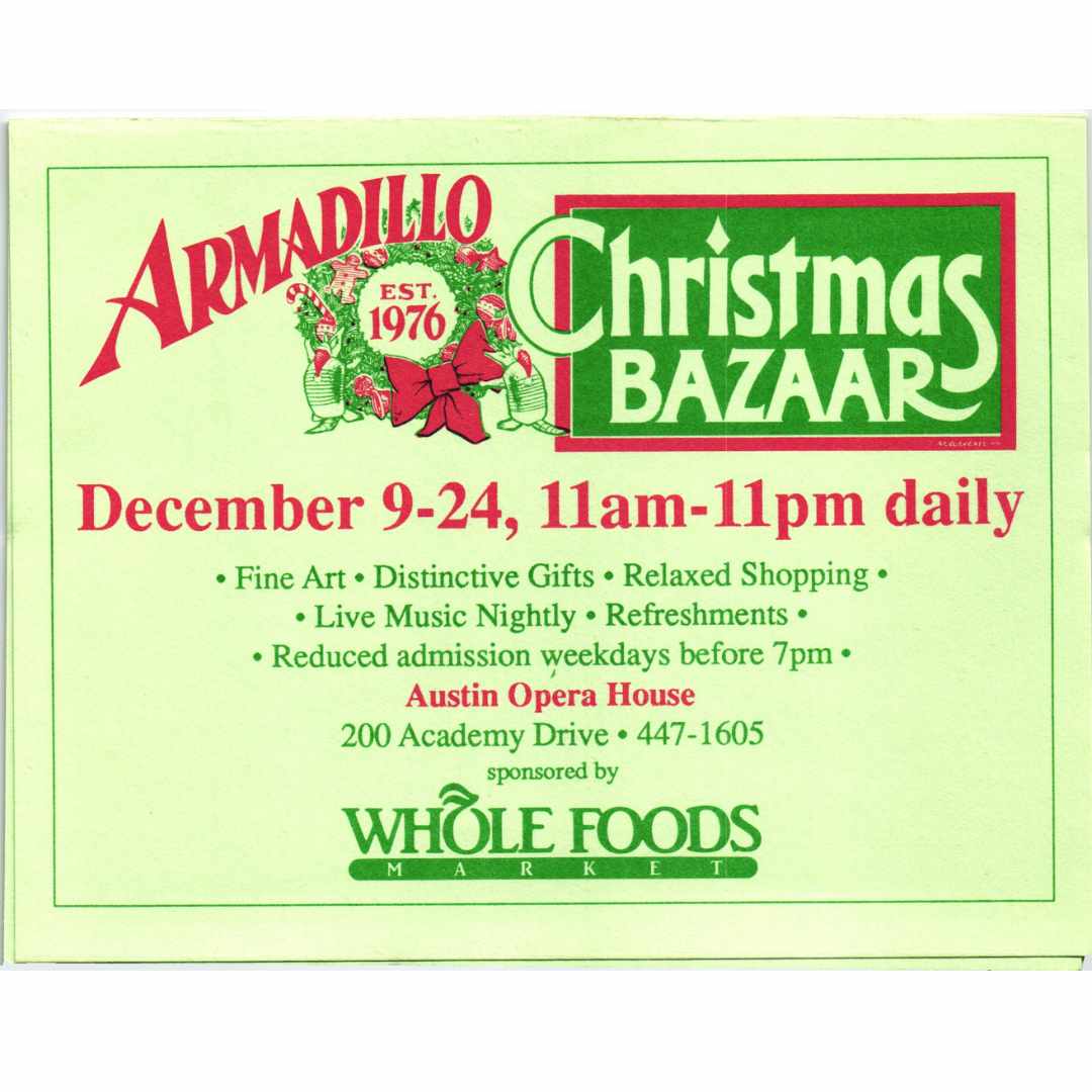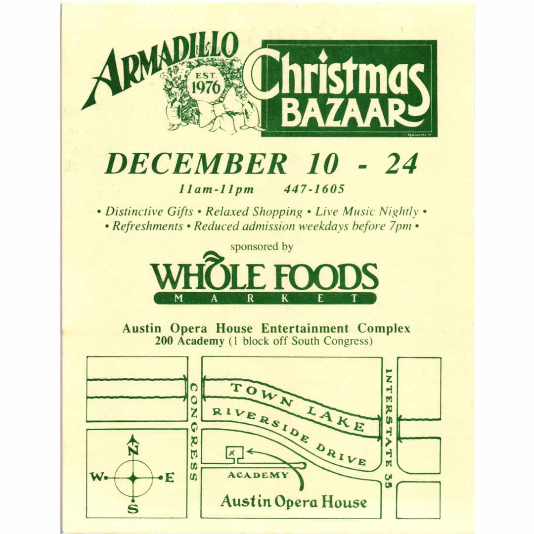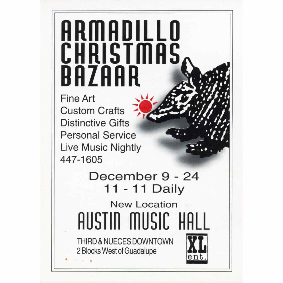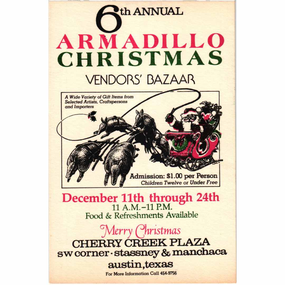 In 1976, Armadillo World Headquarters was in deep financial trouble and getting deeper. An offhand comment by Lucinda Williams inspired Bruce Willenzik to dream up the idea of a Christmas market at The Armadillo.