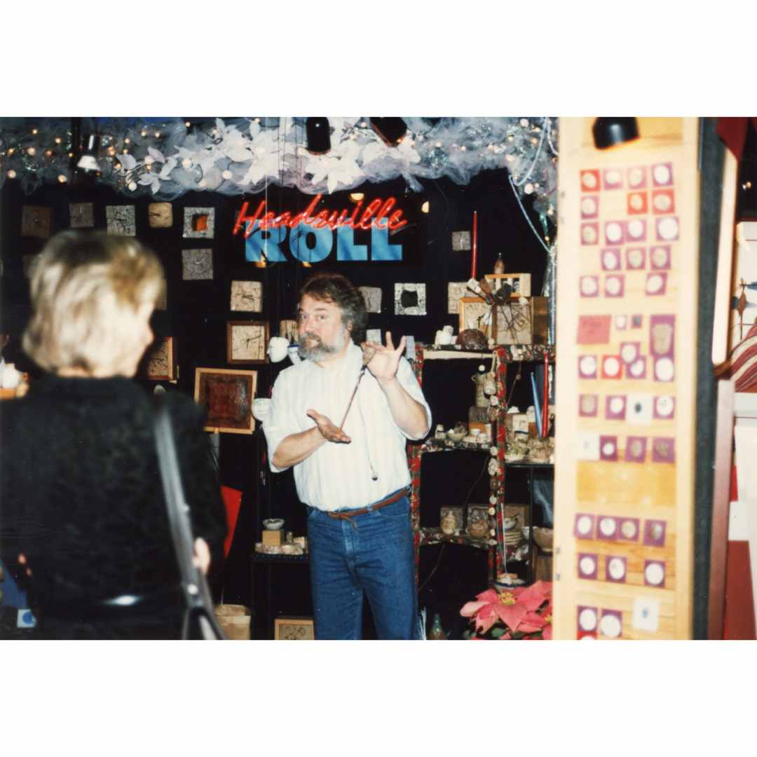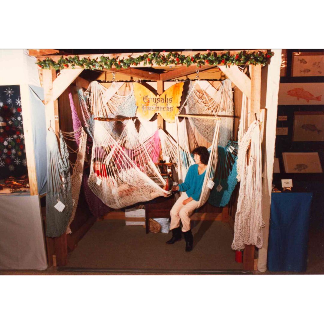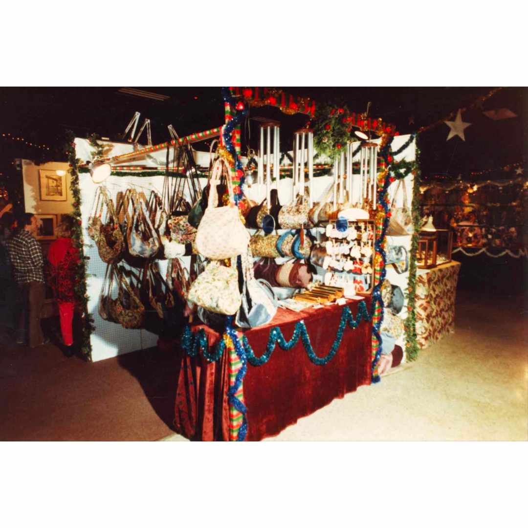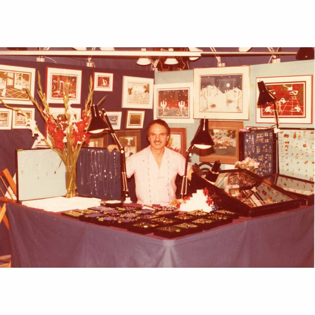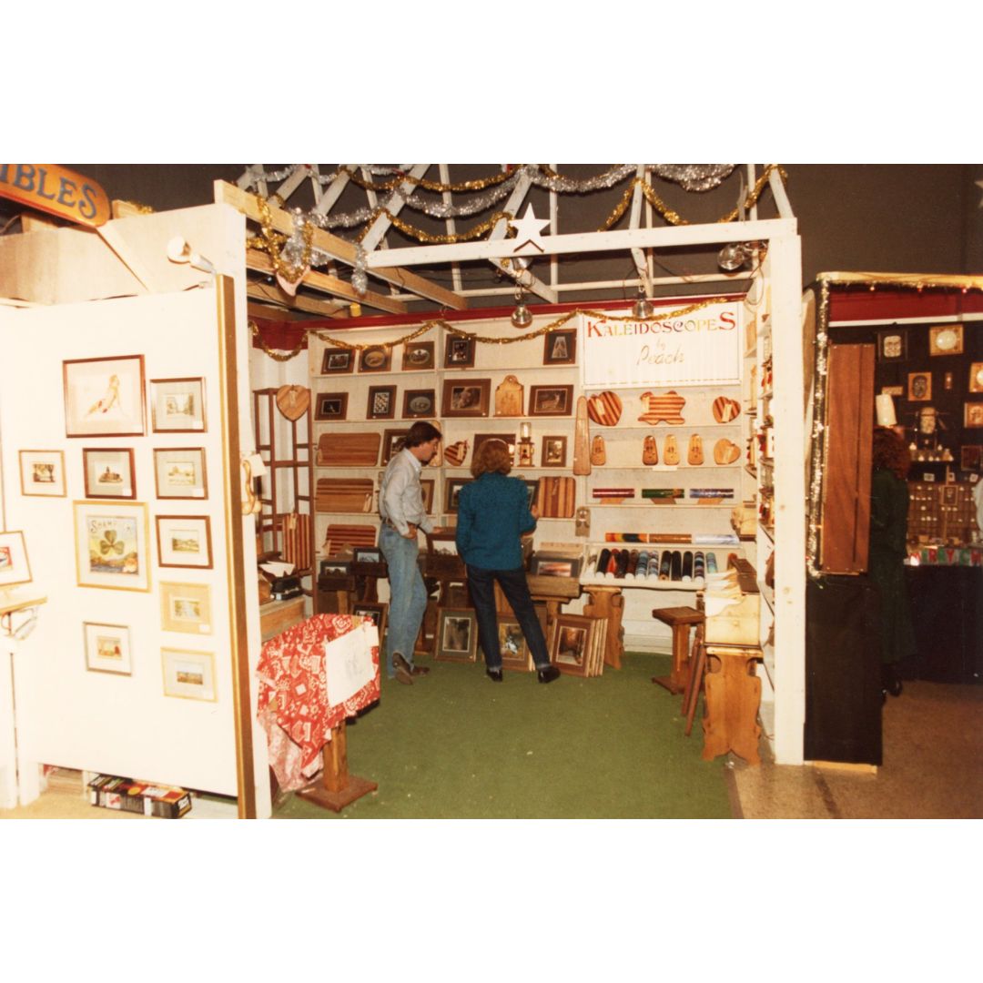 Our future day shift manager Cris Arnold made his first appearance selling moccasins for Bald Mountain. Bart and Cynthia Kelley joined the staff in 1981. Anne Kelley (Johnson) was born in 82. Notable artists added to the show were Rebekah Papparella, Gypsy Wings Travelbags, Terri Koithan, Crysalis Hammocks, Suzanne Chustz and Lance Heddan, and Wolf Sittler.