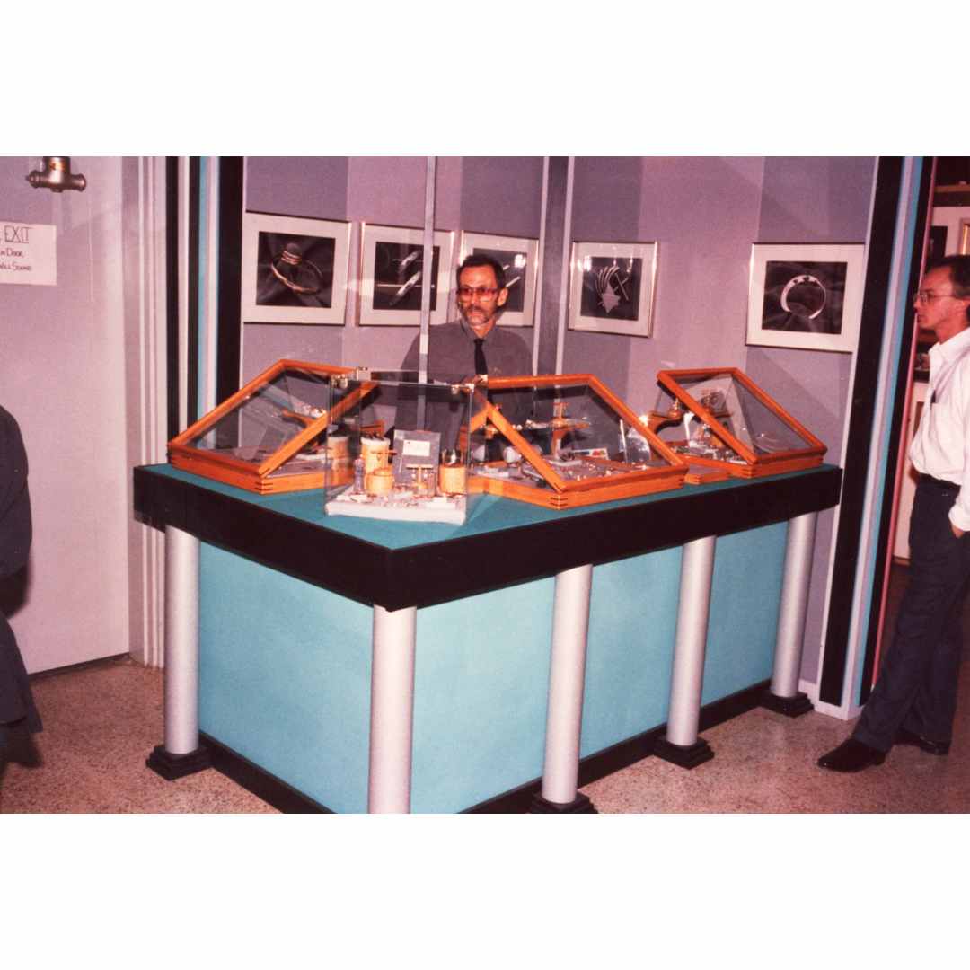 By 1993, we expanded into the building’s large ballroom, allowing space for 84 booths—including four set right on the stage. That same year, Annie Harding joined the team as our evening box office person.