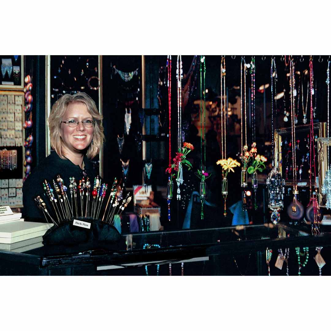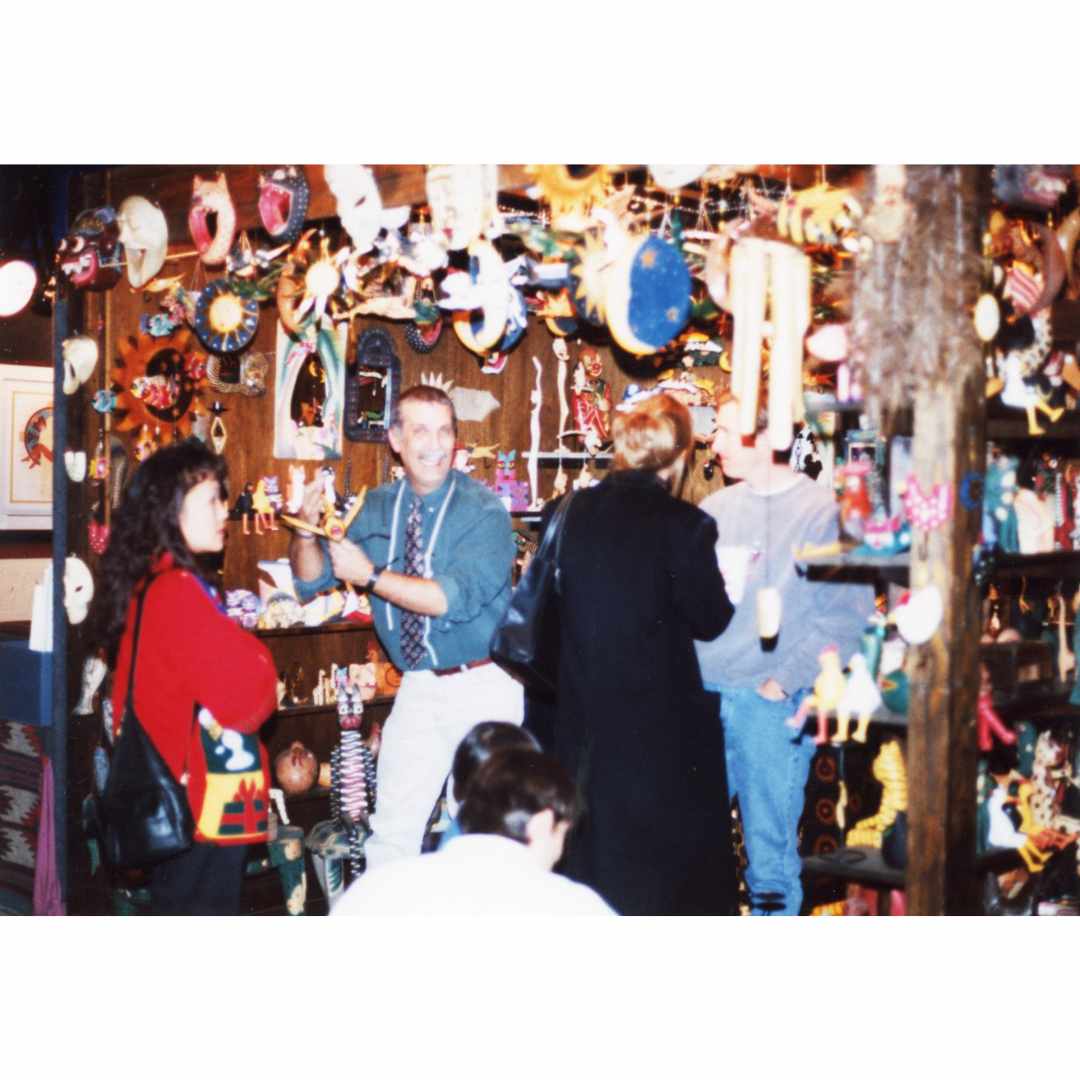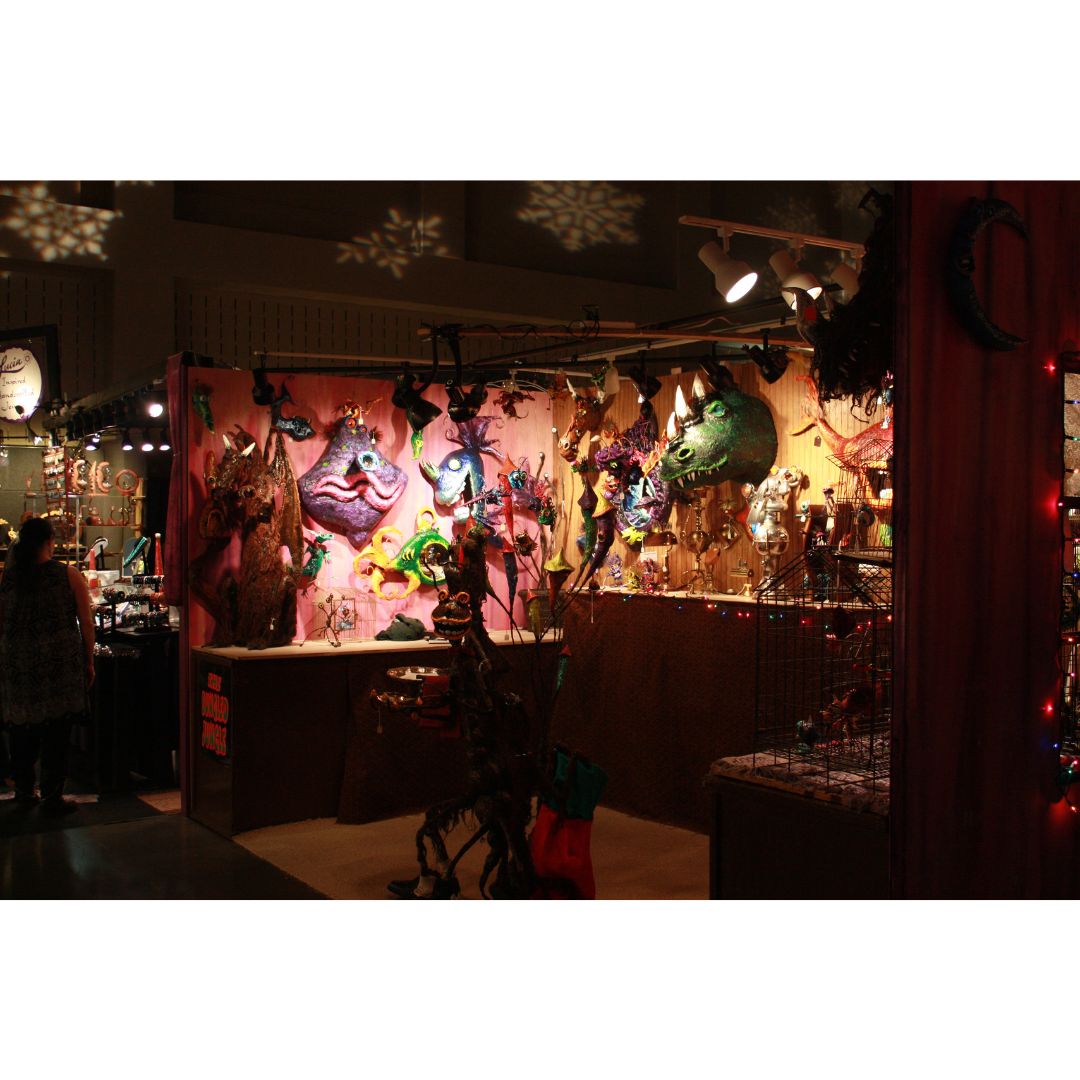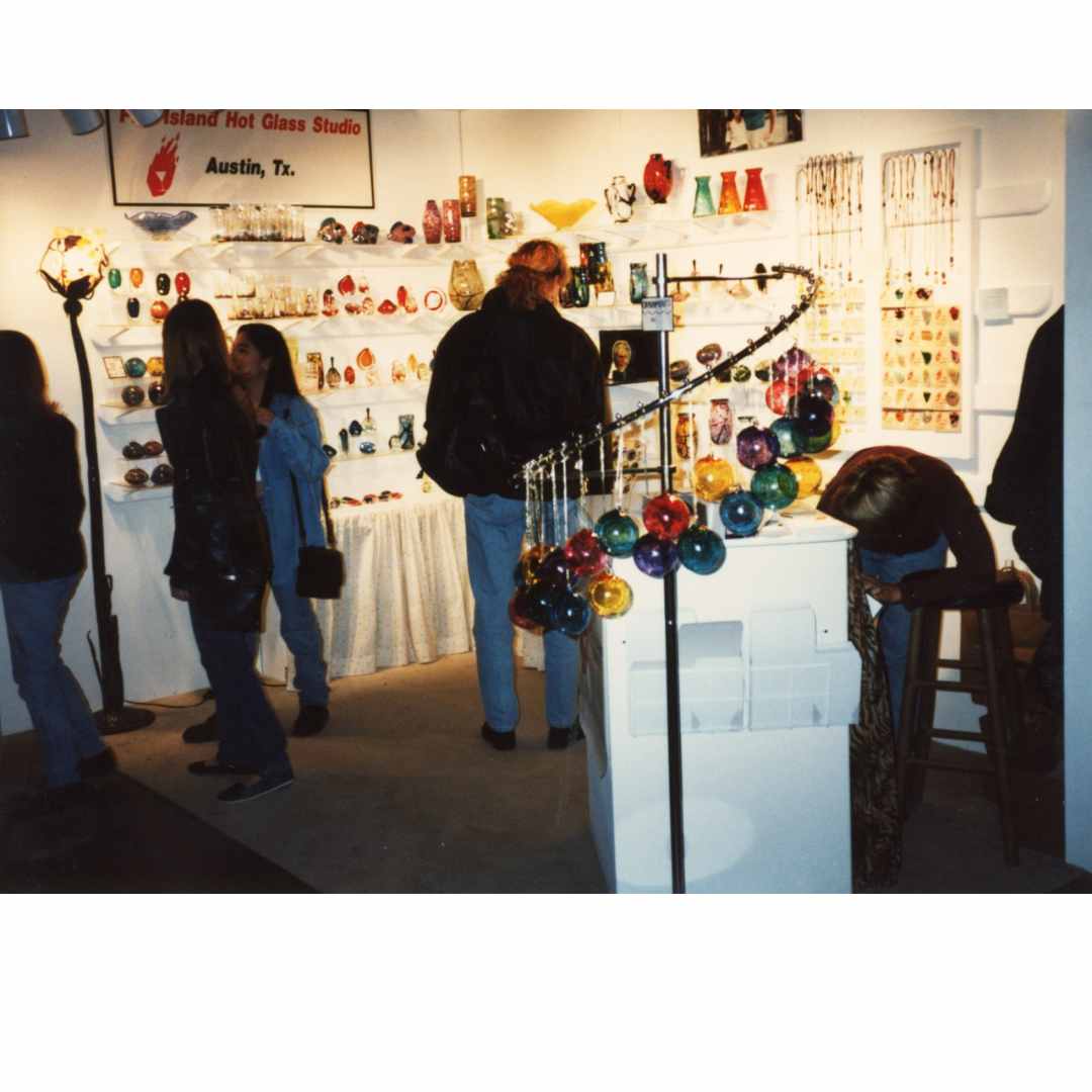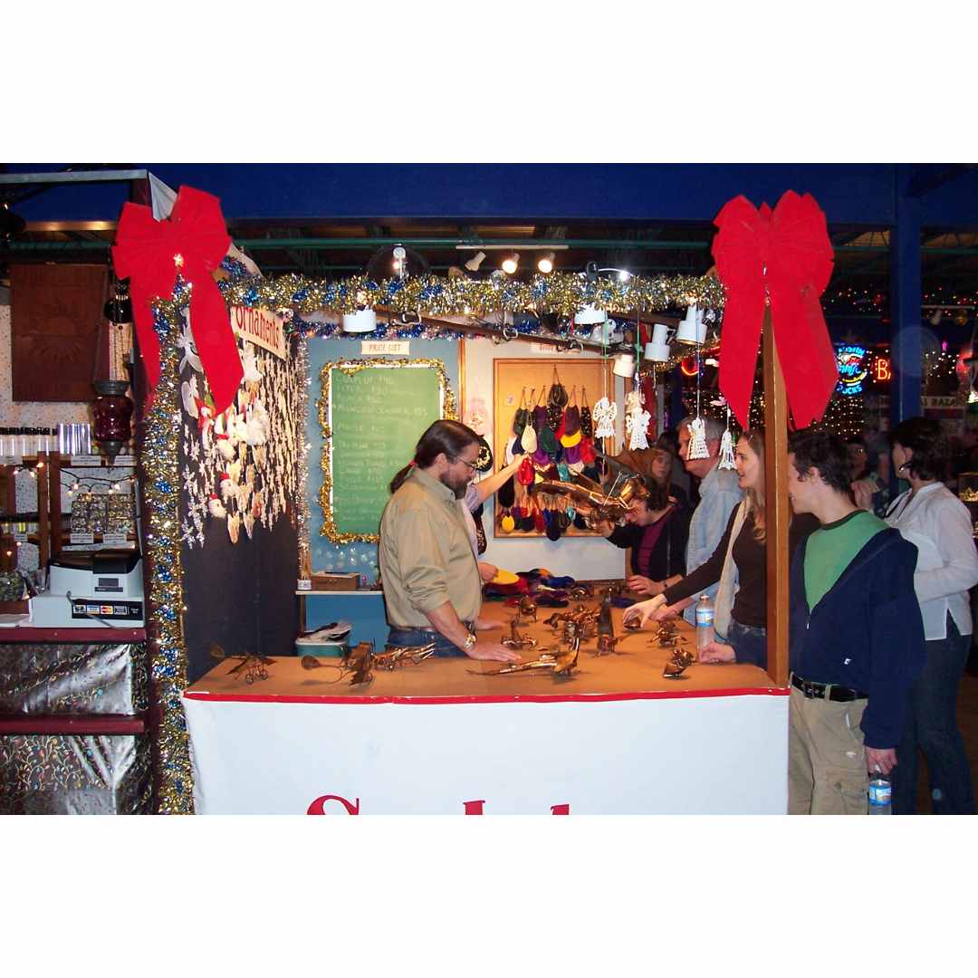 We moved to the Austin Music Hall in 1995, and we felt right at home. We celebrated 20 incredible years! Austin’s one-stop bop-and-shop continues to be the go-to destination for unique, hard-to-find, and wildly creative gifts—plus live local music every night. We had a full bar featuring the friendliest bartenders in town and mouthwatering food by Luke Bibby. Our bar was always hopping; our artists and customers were happy. Our new young manager on duty Charlie Jones (later part of C3 Presents) was keenly interested in learning about festivals. Ray Wylie Hubbard was first booked and subsequently played annually for 22 years. Notable artists added to the roster: Alexa Walker, Gail Kincaid Jewelry, Greg Delaney and Kent Samuelson, Light Crafters. At our new location, we transformed the bar into a cozy winter wonderland and made room for 80 artist booths—bringing together art, music, food, and holiday spirit all under one roof.