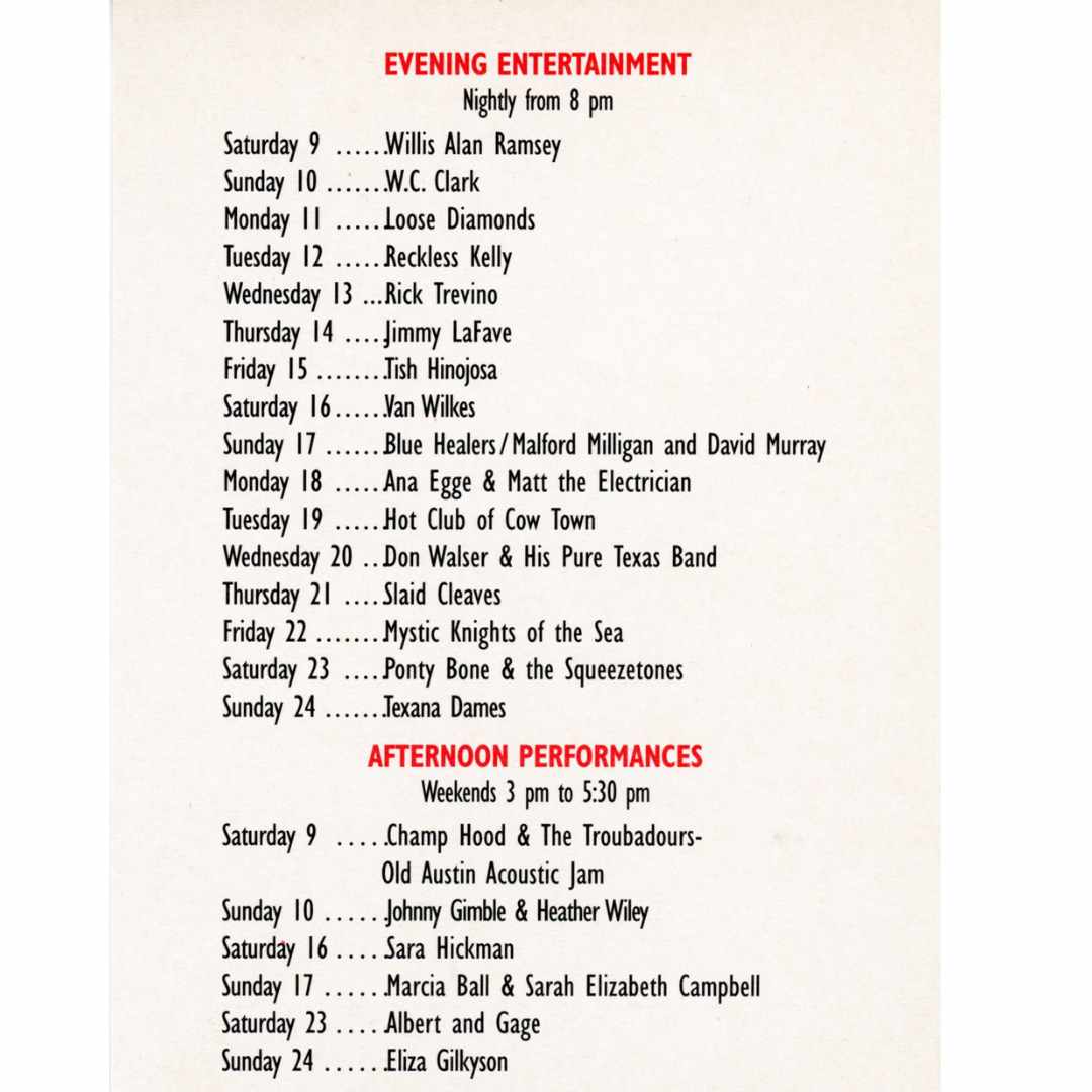 In 1993, we began a cherished Christmas Eve tradition featuring music by The Texana Dames, who performed together every closing night for 19 consecutive years. That same year, Jimmy LaFave gave his first solo performance on our stage giving him a 15-year legacy with us.