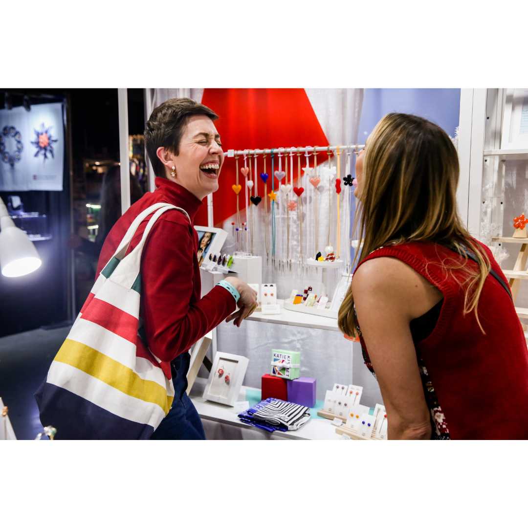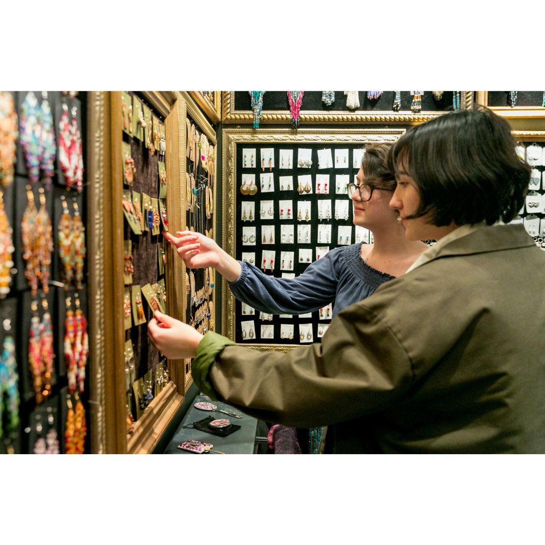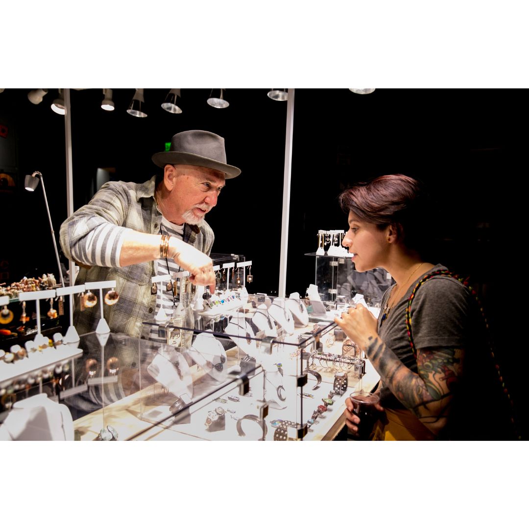 It’s the Bazaar’s familial spirit, the strumming of a guitar and the winding booths with visual delights around every corner. Long strands of colored lights, and soft light in the artist booths. We celebrated our 25th anniversary, welcomed new artists to the show, Jay Long and Russell Strawn Smith, Scattered Jewelry.