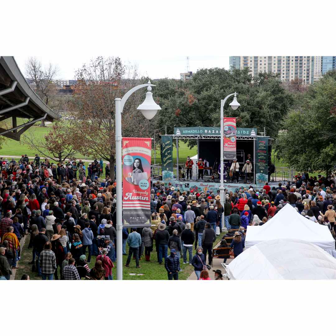 Our featured art this year came from talented mosaic artist Aly Winningham, whose intricate work set the tone for a show full of color and creativity. We welcomed a strong wave of new artists, including Lisa Morales, Michael Schweggman, Terra Cottage Ceramics, and Karen Van Horn-Morgan, all bringing fresh perspectives to the Armadillo family. Over the course of the 11-day event, our stage hosted an unforgettable mix of talent—from emerging stars like Los Coast, to beloved local legends like Jimmy LaFave, and even Grammy winners such as Marcia Ball. The intimate setting of the Armadillo stage made it possible to experience these Texas music all-stars up close, in a warm and festive holiday atmosphere surrounded by friends and family. In a rapidly growing city full of new festivals and fleeting trends, we’re proud to remain one of the few enduring “Old Austin” traditions—and we’re still going strong. Because let’s face it: everyone loves a good party.