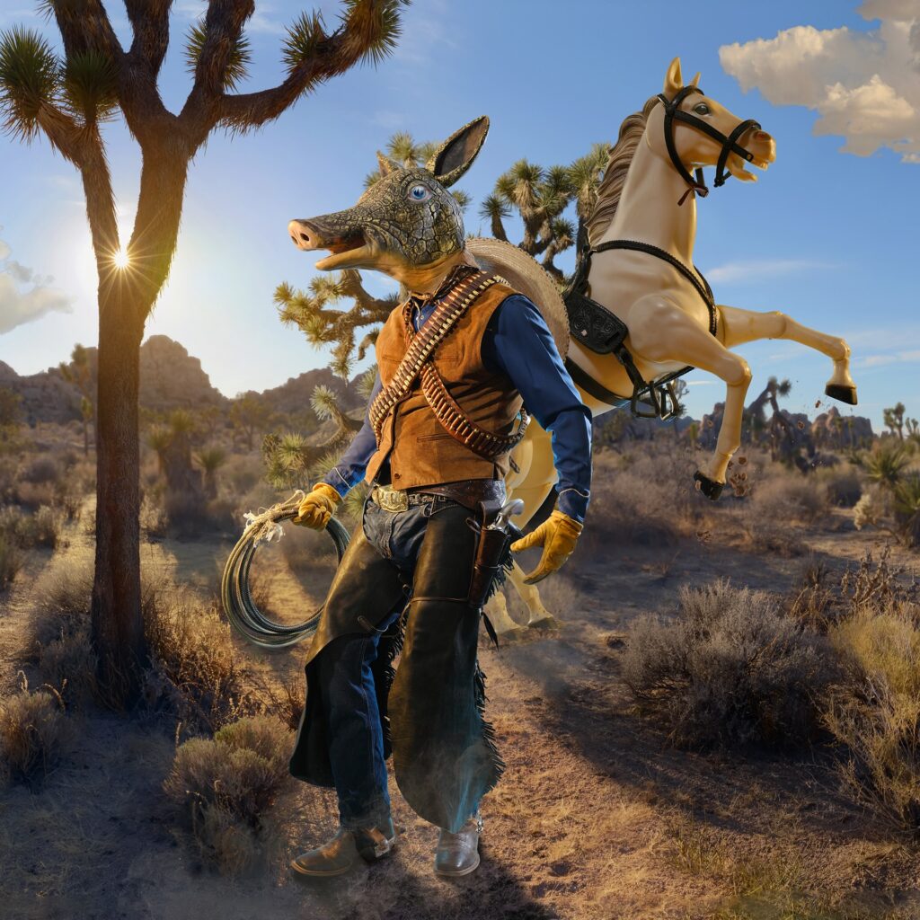 Up on Coffee Pot Rock is part of Shawn’s From the Wild series—his surreal, photo-based self-portrait work featuring anthropomorphic, human-animal hybrids. Blending photography with digital editing, Shawn creates imaginative scenes that explore identity through a mask-like lens.