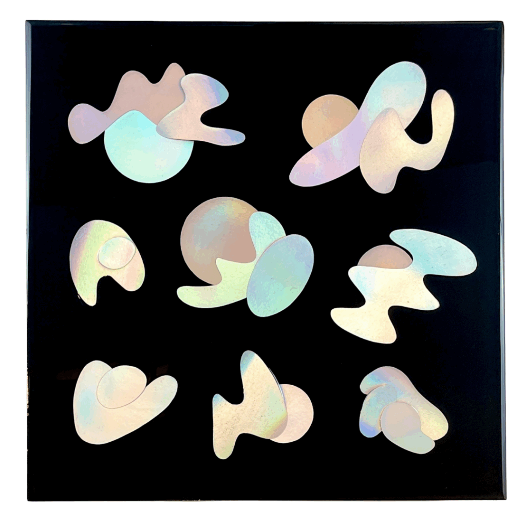 “Brume” features Amy’s original artwork on hand-cut cardstock, framed between two layers of epoxy resin in custom wooden frames. A serene piece for easy living—art that's as calming as it is beautiful.
