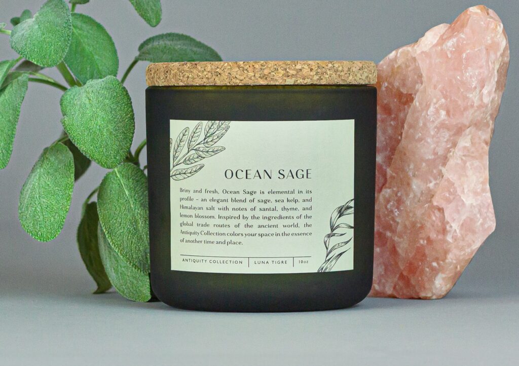 Briny and fresh, Ocean Sage blends sage, sea kelp, and Himalayan salt with hints of santal and lemon blossom. Part of the Antiquity Collection, it brings a calm, worldly essence to your space—easy, elevated, and timeless.