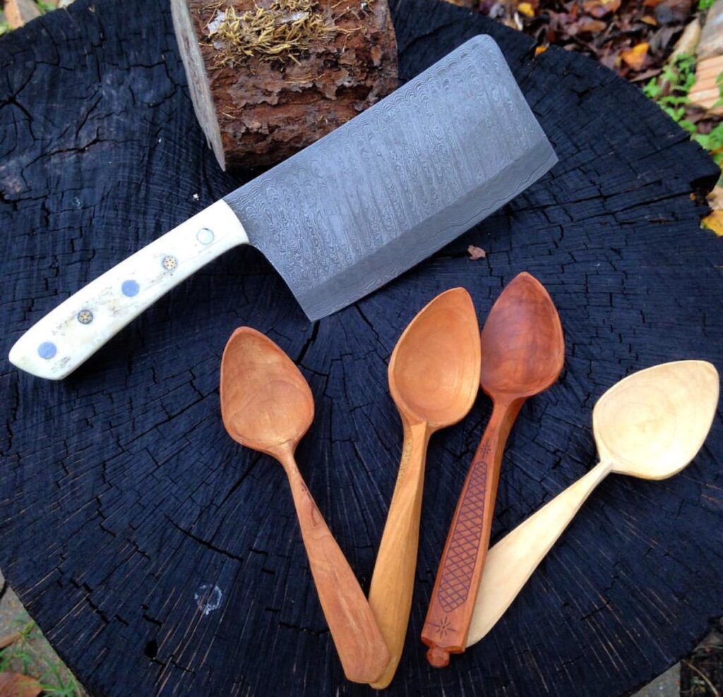 Crafted for everyday ease, these kitchen essentials include Heart Spoons made from walnut, beech, and mesquite, and the handcrafted full-tang Padlock Knife—featuring a 440C stainless steel blade, micarta handle, and brass pins for lasting durability and timeless style.