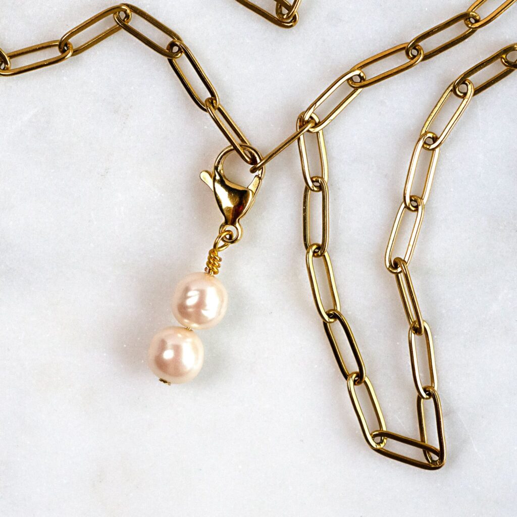 This adjustable paperclip chain bracelet features a vintage glass pearl charm from the Pearl Collection, made with deadstock pearls originally created for iconic designer Miriam Haskell. Beloved by Hollywood legends like Joan Crawford and Lucille Ball, these timeless pearls add a touch of vintage glamour to any look.